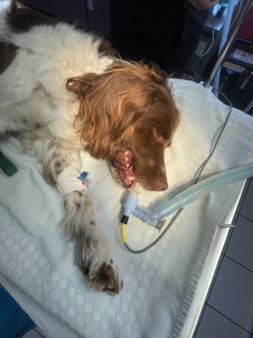 Il est intubé (sonde insérée dans sa trachée) afin de le maintenir sous oxygène et de pouvoir prolonger l’anesthésie avec un gaz si cela est nécessaire